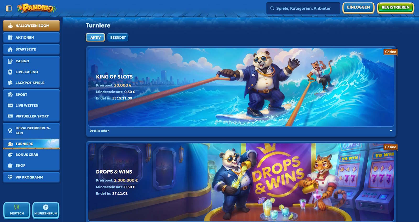 Einzahlung ab 20 EUR: Dieses Angebot gilt nur für Neukunden, die sich im Pandido Casino registriert und ihre erste Einzahlung in Echtgeld getätigt haben.