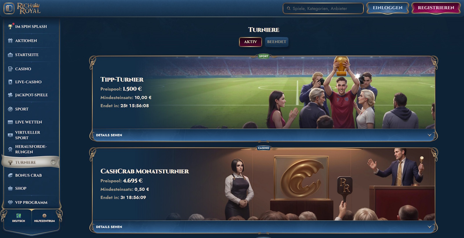 Einzahlung ab 20 EUR: Dieses Angebot gilt nur für Neukunden, die sich im RichRoyal Casino registriert und ihre erste Einzahlung in Echtgeld getätigt haben.